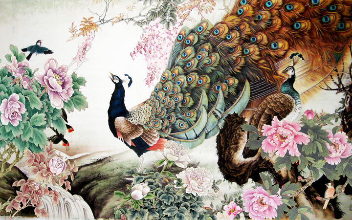 工筆 孔雀美圖